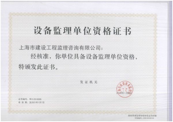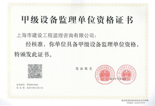 资质名称: 甲级设备监理单位资格证书 |