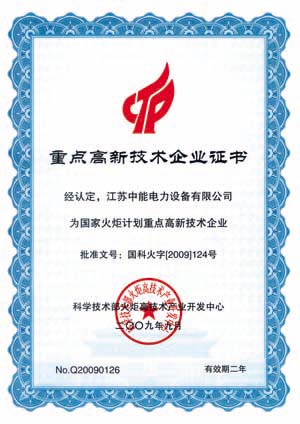 | 持证单位: 江苏中能电力设备有限公司 |