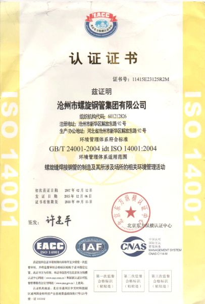 ISO环境管理体系证书