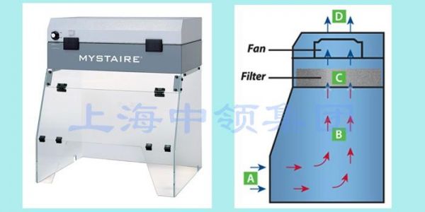 Mystaire® 向下排风式工作台是为保护操作人员隔离粉末或烟雾设计的独立无管通风柜。工作台的开放式的设计允许近距离观察样本的同时保持对操作者的高级保护。有害微粒子和烟雾被向下引致通过不锈钢工作表面,其污染物被一系列的过滤器进行过滤。当有毒烟雾和粉末被过滤后, 洁净的空气又返回到室内。