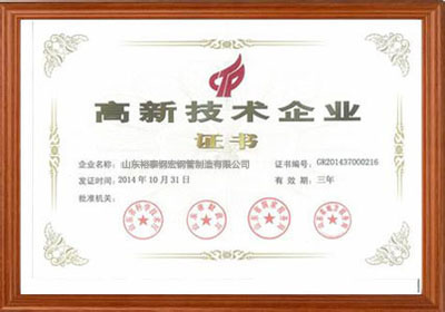 | 资质单位: 山东裕泰钢宏钢管制造有限公司 |